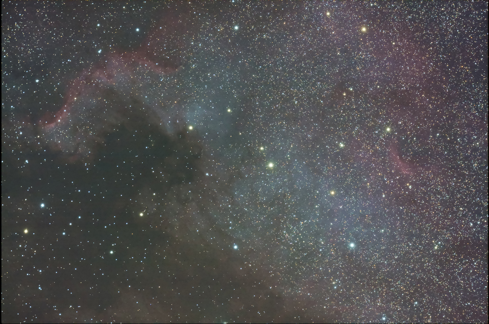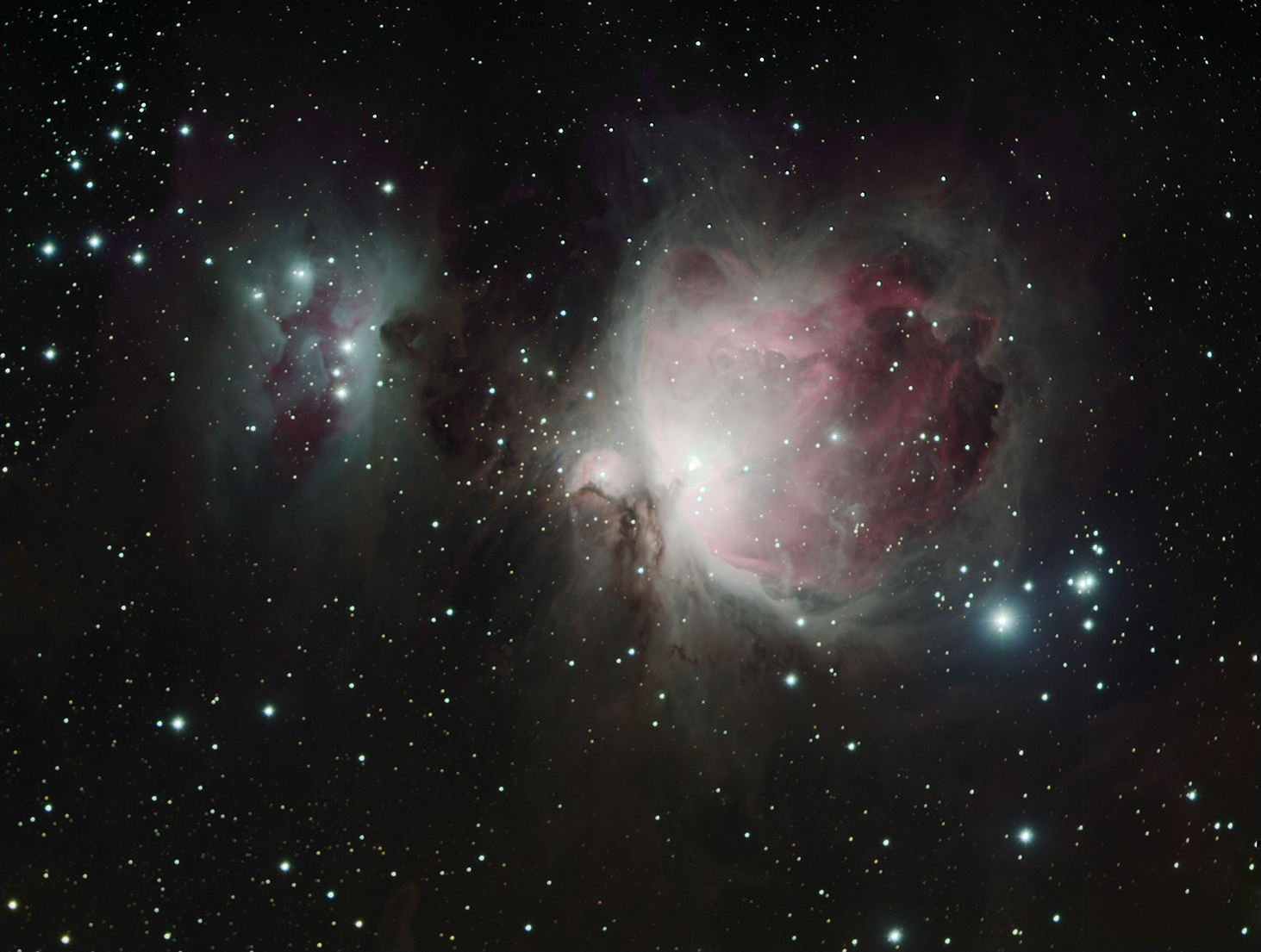 The combination of the NP101is and the STF8300 provides a nice wide field of view (FOV) of almost 2 degrees by 1.5 degrees. The downside is that each pixel covers 2.06 arc seconds. Combine that with the 4 inch optics in the NP101is and resolution suffers. But for big targets like the larger nebulae, many start clusters, and large galaxies such as M31 and M33, its a great system.